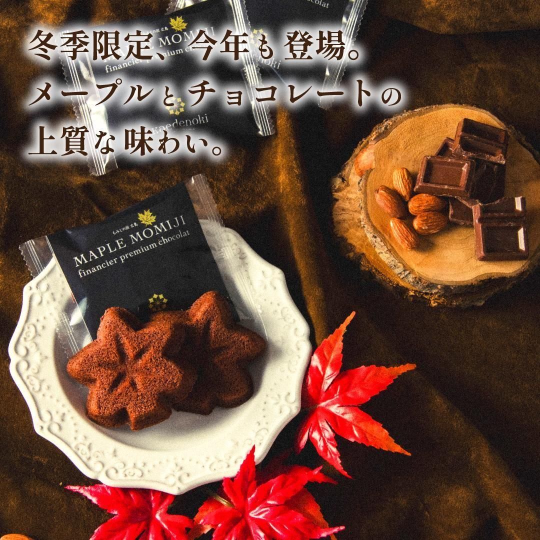 期間限定販売 メープルもみじフィナンシェ&プレミアムショコラ 36個入 kaedenokiが誇る売り上げNo.1 メープルもみじフィナンシェと、メープルもみじフィナンシェプレミアムショコラがそれぞれ18個づつ全36個たっぷり入ったセット。 化粧箱入りですので、大切な方への贈り物に最適です。 厳選された原材料 楓乃樹スイーツは、深いコクと芳醇な風味にこだわり、メープルはもちろんひとつひとつの原材料も厳選したもののみを使用しています。 カナダ・ケベック州産のメープルを100%使用 楓乃樹メープルシリーズは、メープルシロップの名産国として有名な カナダ・ケベック州産のメープルを100%使用しているので、お子様でも安心してお召し上がり頂けます。 メープルとチョコの香り豊かなスイーツ メープルもみじフィナンシェをベースにココアパウダー、クーベルチュールチョコレートを加える事により、 メープルとチョコレートのハーモニーをお楽しみ頂けます。 期間限定販売、冬季のみのお楽しみとなっておりますので、お早目におためし下さいませ。